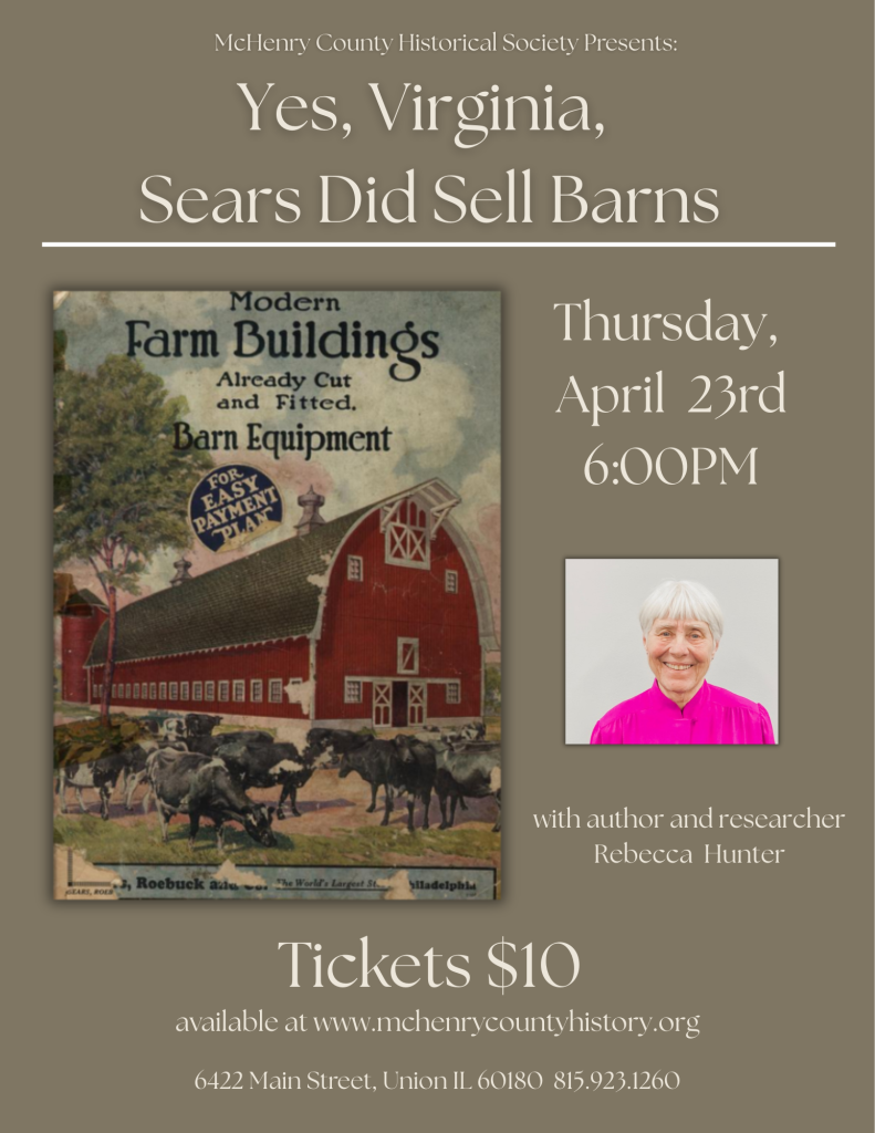 April 23, 2026 @ 6:00 pm – Have an interest in barns and history? Join author and researcher Rebecca Hunter as she explores the Sears company’s role in selling barns. Tickets are $10. Register HERE.
